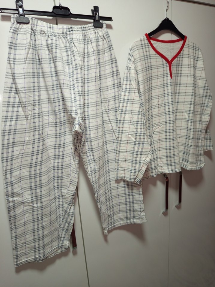 L/XL BDN Gri bej,ekose desenli, uzun kollu, normal boy uzun pantolonlu, bol kesim kadın pijama takımı, rahat ve konforlu bir uyku için tasarlanmıştır. içi ŞARDONLU TERLETMEZ PENYE TARZ KUMAŞI VAR 3 MEVSİMLİK, BÜYÜK BEDEN HANIMLAR İÇİN sıfır değildir defosu yok 3/5 Kez giyilmiş yıkayıp kaldırıldı