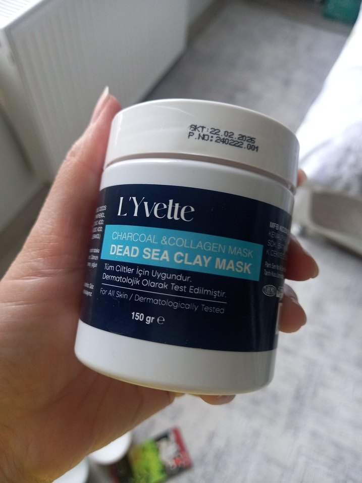 L'Yvette Charcoal & Collagen Ölü Deniz Kil Maskesi 150 gramdır. Dermatolojik olarak test edilmiş ve tüm cilt tipleri için uygundur.