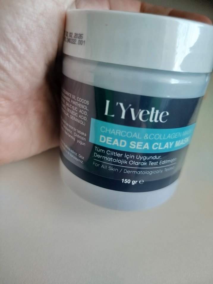 L'Yvette Kömür ve Kolajen Ölü Deniz Kil Maskesi, tüm cilt tipleri için uygundur ve dermatolojik olarak test edilmiştir. 150 gramlık ambalajda sunulur.