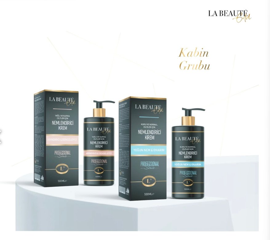 La Beaute nemlendirici krem, 150ml şişede hem kuru ve hassas hem yağlı ve karma ciltler için yoğun nem ve onarım sağlar. Profesyonel kullanım için uygundur. Profilde yağlı ciltler için olanı mevcut