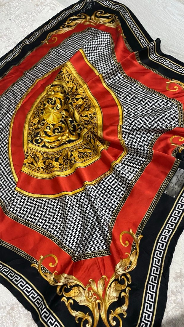 Kadınlar için ipeksi kumaştan, çok renkli ve ışıltılı klasik tarzda, drapeli şal. Paris usulü zarafeti yansıtır.