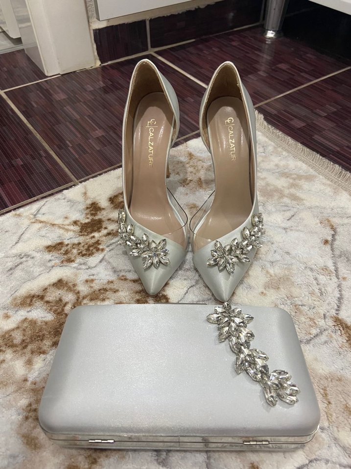 Sadece 1 kere düğünde giydim, kullanıma bağlı kirlilik minimum seviyededir görsellere ekledim, kullandıktan sonra her yerini güzelce silip kaldırmıştım, çanta zinciri de mevcuttur, topuk 10 cm, tam kalıptır, 38.5 veya 39 giyiyorsanız rahatsız edebilir ona göre alın