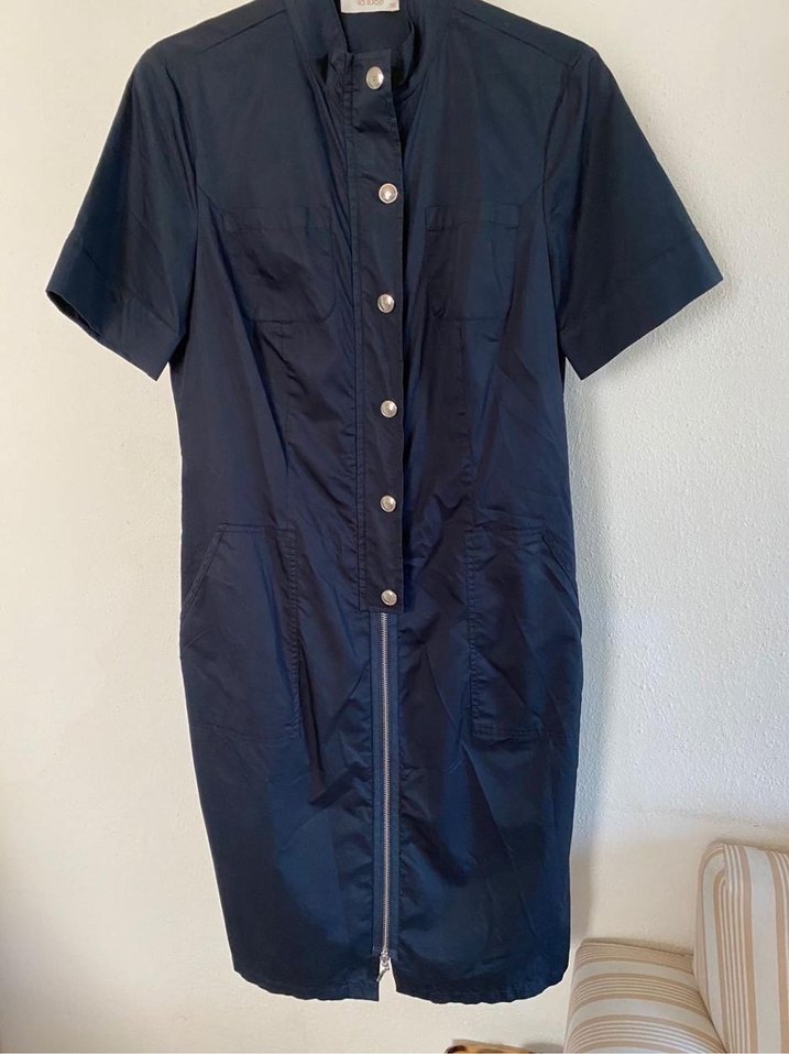 La luce lacivert elbise 38 beden Kullanmadim sifirdir. Nefis bir elbisedir. Çok rahat çok sik. Beden 38. Koltuk altindan koltuk altina 47cm aDüğmeli, kısa kollu, hakim yakalı ve lacivert midi elbise. Pamuklu kumaştan üretilmiş, ofis için uygun şık bir tasarım.