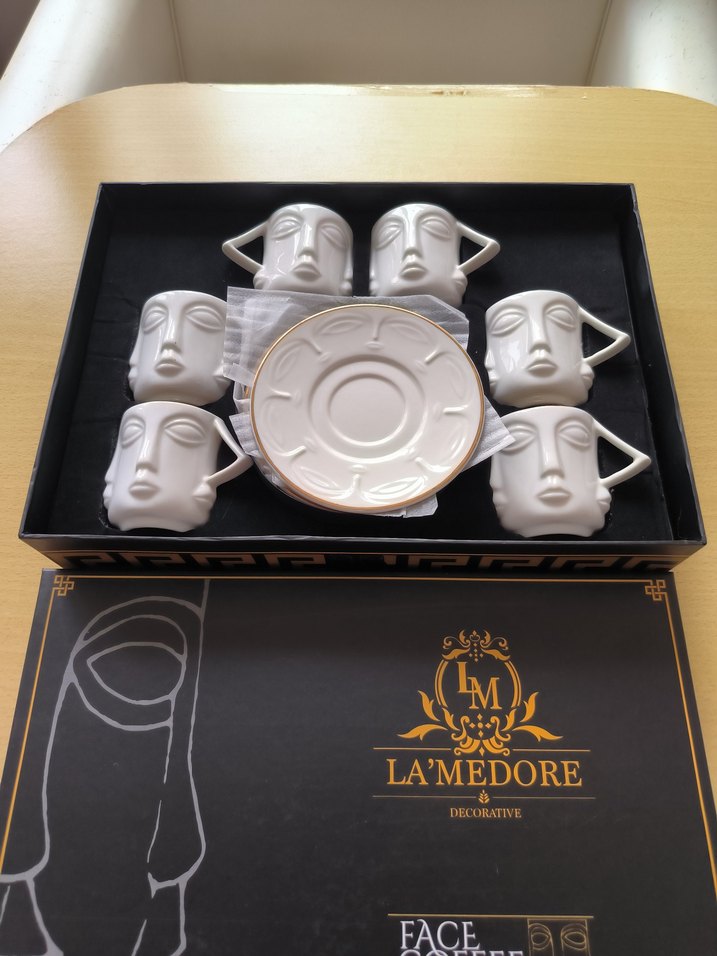 Almak için iletişime geçiniz ilan açacağım. İKİLİ TAKIM şeklinde satılmaktadır. İKİLİ TAKIM FİYATIDIR. La'Medore markalı, yüz figürlü beyaz fincan ve tabağı içeren dekoratif set. Sanatsal tasarımıyla dikkat çeker. ☕