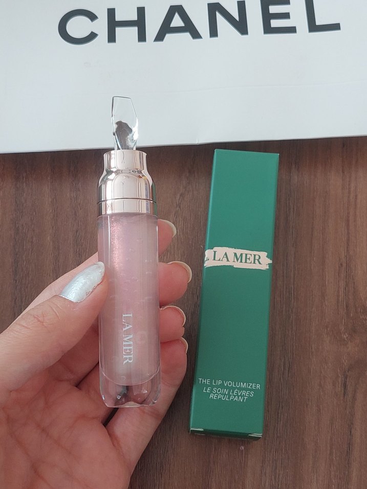 La Mer dudak parlatıcısı, pastel pembe renkte ve hacim veren etkisiyle şık bir şişede, özel aplikatörlü.