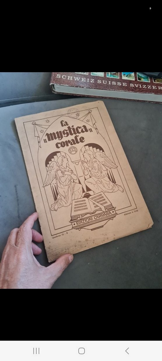 La Mystica Corale adlı eski mitoloji kitabı, melekler ve mistik sembollerle süslenmiş kapak tasarımına sahiptir. Edizioni Carrara tarafından İsviçre'de yayımlanmıştır.