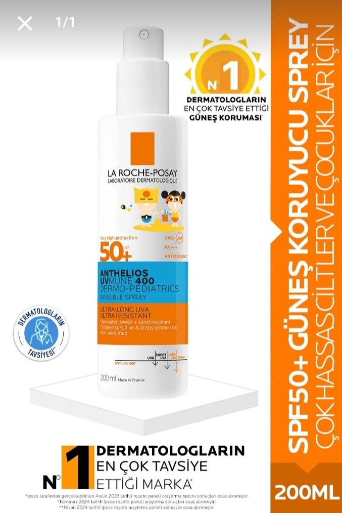 La Roche-Posay Anthelios 400 SPF50+ güneş spreyi, hassas ciltler ve çocuklar için yüksek koruma sağlar. Dermatologlarca tavsiye edilir, suya dayanıklı ve kokusuzdur. Geçtiğimiz yaz oğlum için almıştım doluya yakın pek kullanmadık çocuk istemediği için yetişkinler de kullanabilir tüm cilt tipleri için uygundur şu anki fiyatı 1500 tl den başlıyor 2500 tl ye kadar çıkıyor barkodunu detaylı gösterdim okutabilirsiniz orjinal markadır #güneşkremi