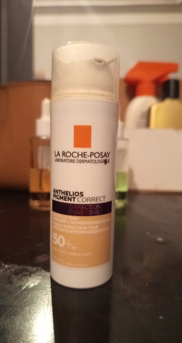 La Roche-Posay Anthelios Pigment Correct güneş kremi SPF 50+ koruma sağlar, orjinal ürün eczaneden alınmış