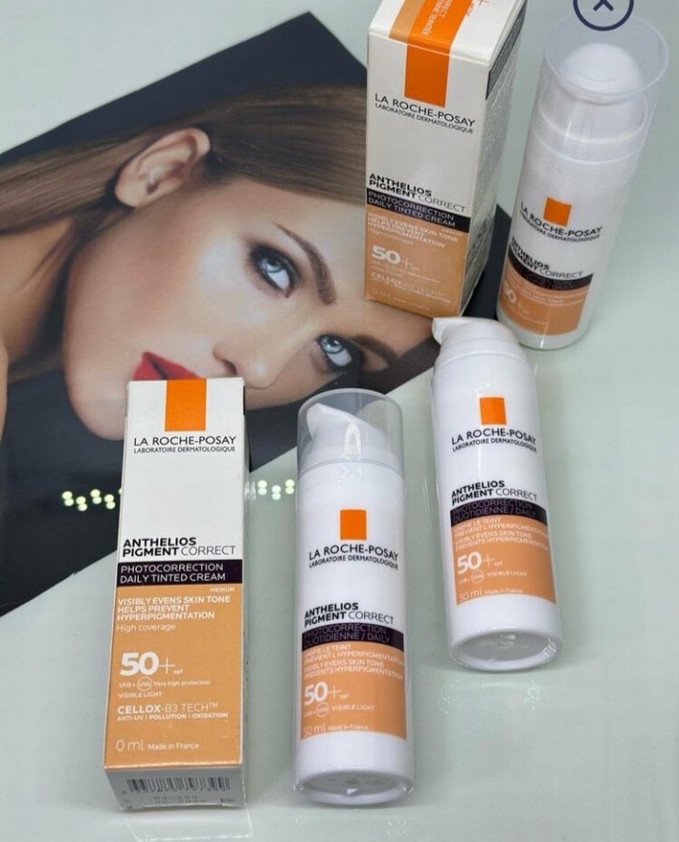 La Roche-Posay Anthelios Pigment Correct SPF 50+ yüksek koruma sağlar, koyu lekeleri düzeltir ve cilt tonunu eşitler. Günlük kullanıma uygun renkli krem olarak sunulur.