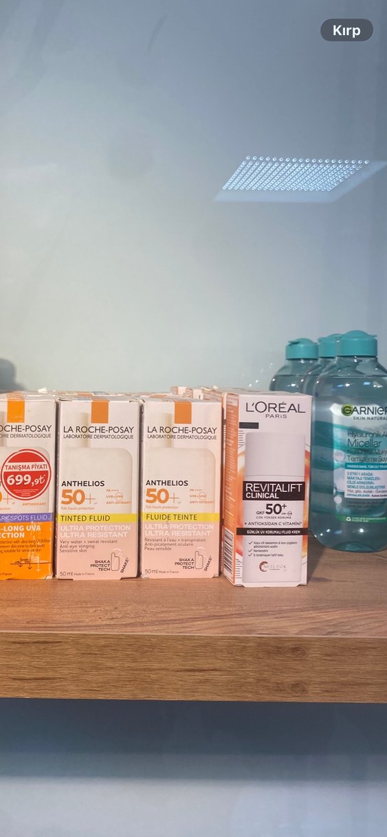 La Roche-Posay Anthelios SPF 50+ tonlu güneş kremi, cildi güneş ışınlarından korur ve eşit ton sağlar. L'Oréal Revitalift Clinical SPF 50+ da cilt bakımı sunar.