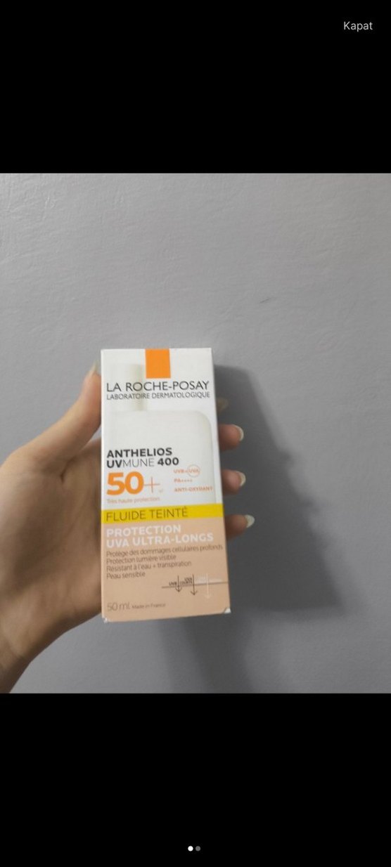 La Roche-Posay Anthelios UVMune 400 SPF 50+ renkli sıvı, ultra uzun UVA koruması sağlar. Hassas ciltler için uygundur. ☀️