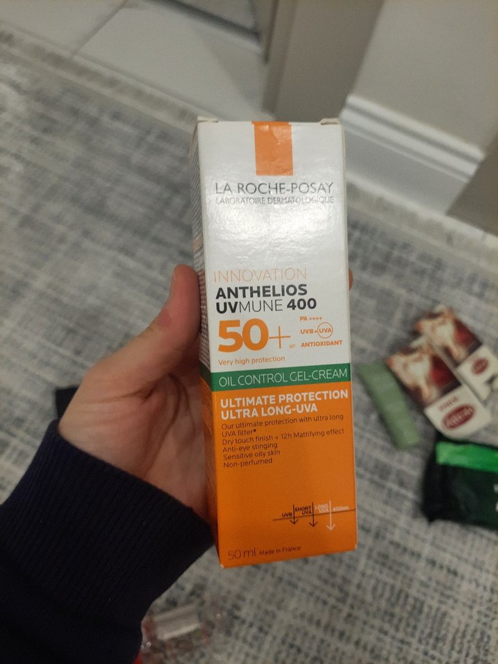 La Roche-Posay Anthelios UVMune 400 SPF 50+ jel-krem, yağ kontrolü ve antioksidan özelliklerle çok yüksek koruma sağlar. Uzun UVA koruması, yağsız his ve hassas ciltlere uygundur. ☀️