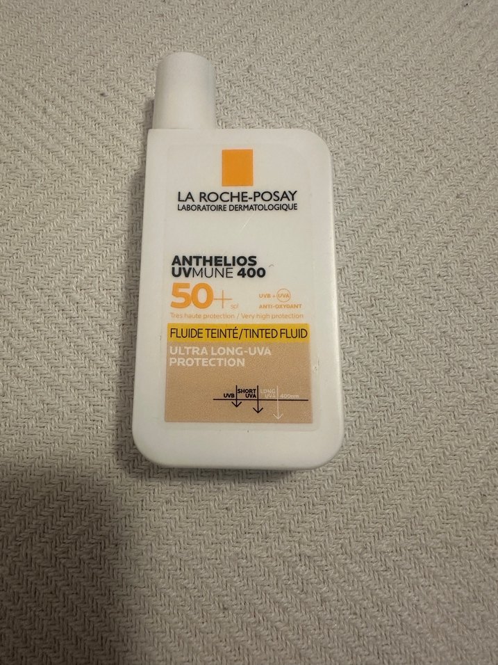 La Roche-Posay Anthelios UVMune 400 SPF 50+ tonlu güneş koruyucu, ultra uzun UVA koruması sağlar. Hafif tonuyla cilt tonunu eşitler ve güçlü güneş koruması sunar. La Roche Posay UV 50+ Anthelios güneş kremi ☀️ Fransa dan alındı açık tenli olduğum için bana koyu geldi 4 kez kullanıldı Temmuz 2025 de alındı yaklaşık 40 ml var tende emilimi güzel yapışık his bırakmıyor yüksek koruma herhangi bir sorunuz varsa lütfen sorun kutusu yoktur !!