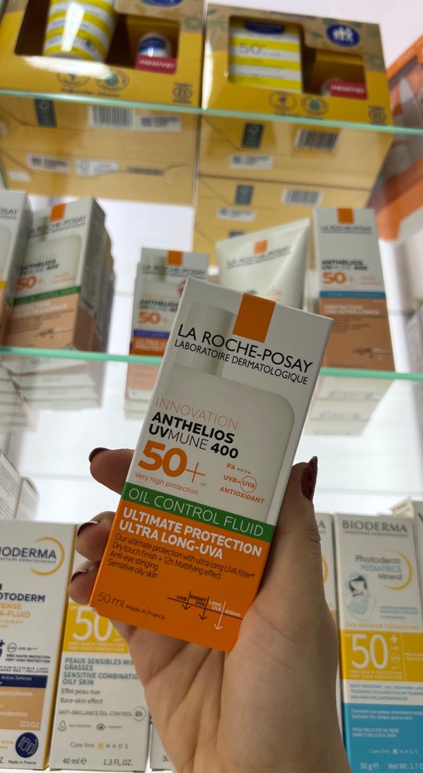 La Roche-Posay Anthelios UVMUNE 400 SPF 50+ yağ kontrolü sağlayan, uzun süreli UVA koruması sunan sıvı formüldür.