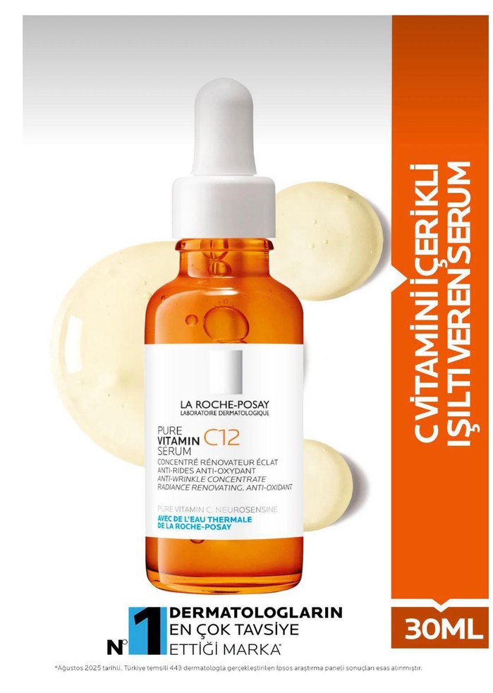 La Roche-Posay C Vitamini 12 içeren serum, antioksidan özellikli, kırışıklık karşıtı ve cilt yenileyici bir üründür. Dermatologlarca tavsiye edilir.