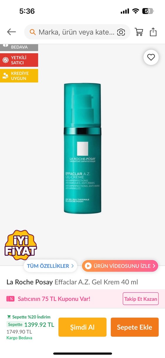 3 ay once trendyoldan, la roche satıcısından aldim. sorunlarımi cozdugu icin artik kullanmıyorum. işaretledigim yer yani yarisindan biraz fazlasi dolu. sıfırı 1400 tldir. son fiyat