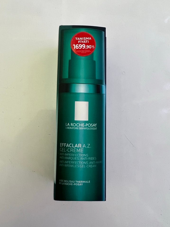 La Roche-Posay Effaclar A.Z. parlak yeşil şişede, leke ve kırışıklık karşıtı jel krem. Fiyat: 1699,90 ₺.