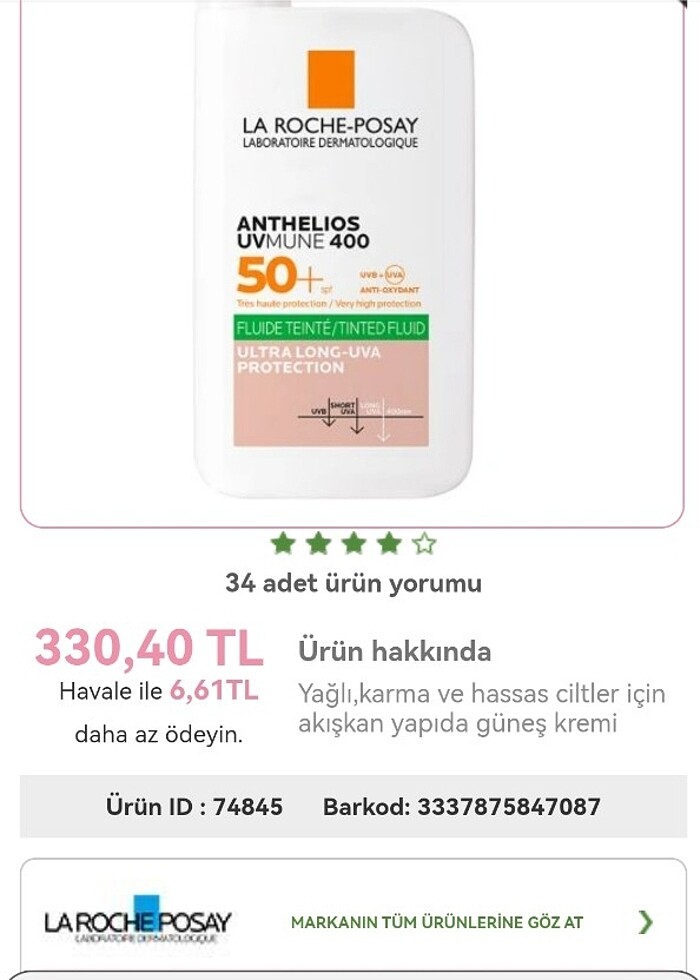 La Roche posay güneş kremi
