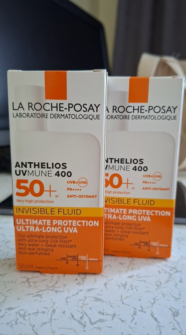Adet fiyatıdır. La Roche-Posay Anthelios UVmune 400 Görünmez Sıvı, SPF 50+ ile çok yüksek güneş koruması sağlar. Ultra uzun UVA koruması, terlemeye dayanıklı, antioksidan ve kokusuzdur. Hassas ciltler için uygundur. ☀️ Yağlı ciltler için alacaktım yanlış sipariş vermişim hiç kullanılmadı yenisini aldım bunlar fazla.
