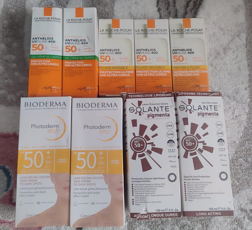 La Roche-Posay Anthelios UVMune 400 ve Bioderma Photoderm Spot SPF 50+ içeren, leke karşıtı ve ultra uzun UVA koruması sağlayan güneş koruyucu set. Solante Pigmenta SPF 50+ da mevcuttur. ☀️ TANESİ 600