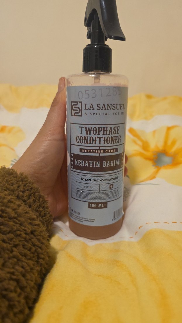 La Sansuel 400ml iki fazlı saç kremi, keratin bakımı ile saçları besleyip korur. ♀️