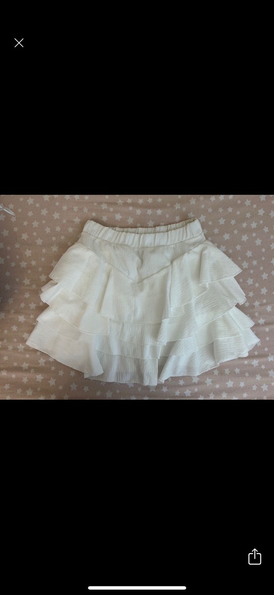 Sentetik kumaştan, bohem tarzda, bol kesim beyaz kat kat fırfırlı mini etek.