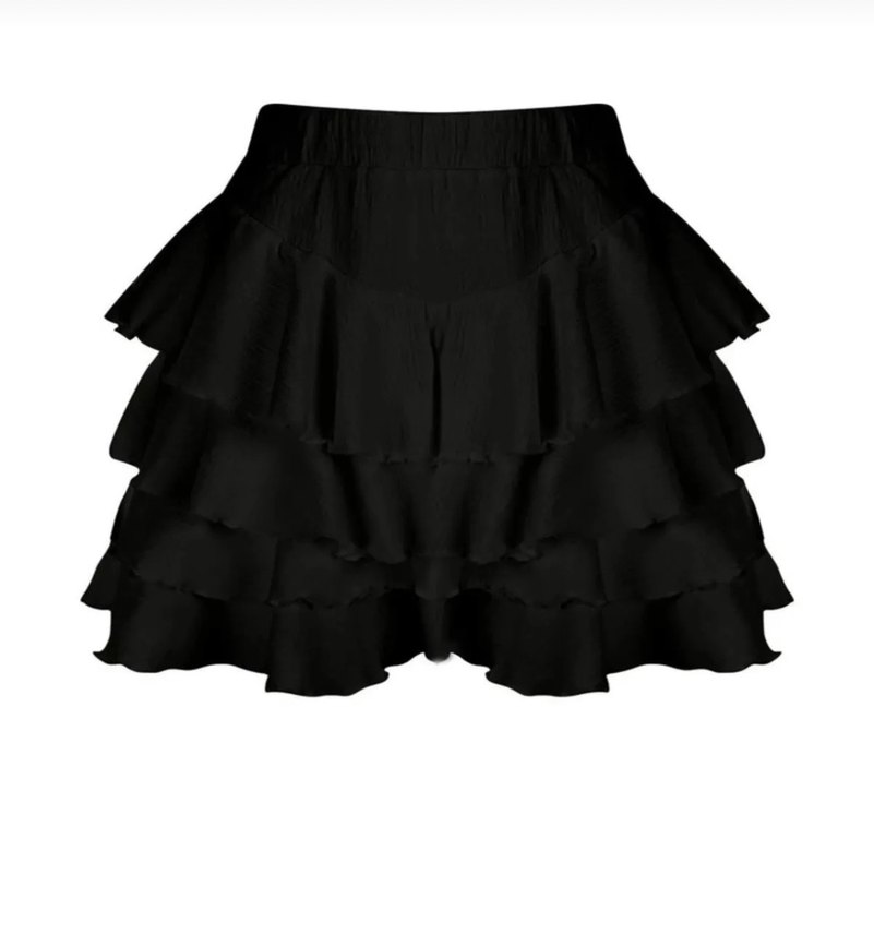 Siyah, volan detaylı, bol kesim mini etek. İpek gibi yumuşak kumaştan, gotik tarzda ve romantik gece için uygun.