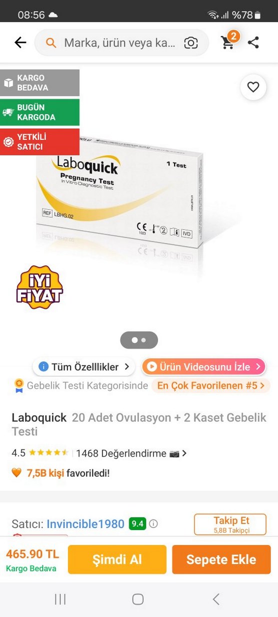 Laboquick gebelik testi, yaninda hızlı gebelik testi var 1 adet fiyatı uygun tutuyorum lütfen Pazarlık yapmayin