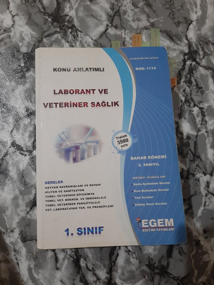 Birinci sınıf öğrencileri için laborant ve veteriner sağlık konularını içeren, 3500'den fazla sorulu bahar dönemi kitabı. Hayvan biyolojisi, hijyen ve mikrobiyoloji gibi dersler yer alır.
