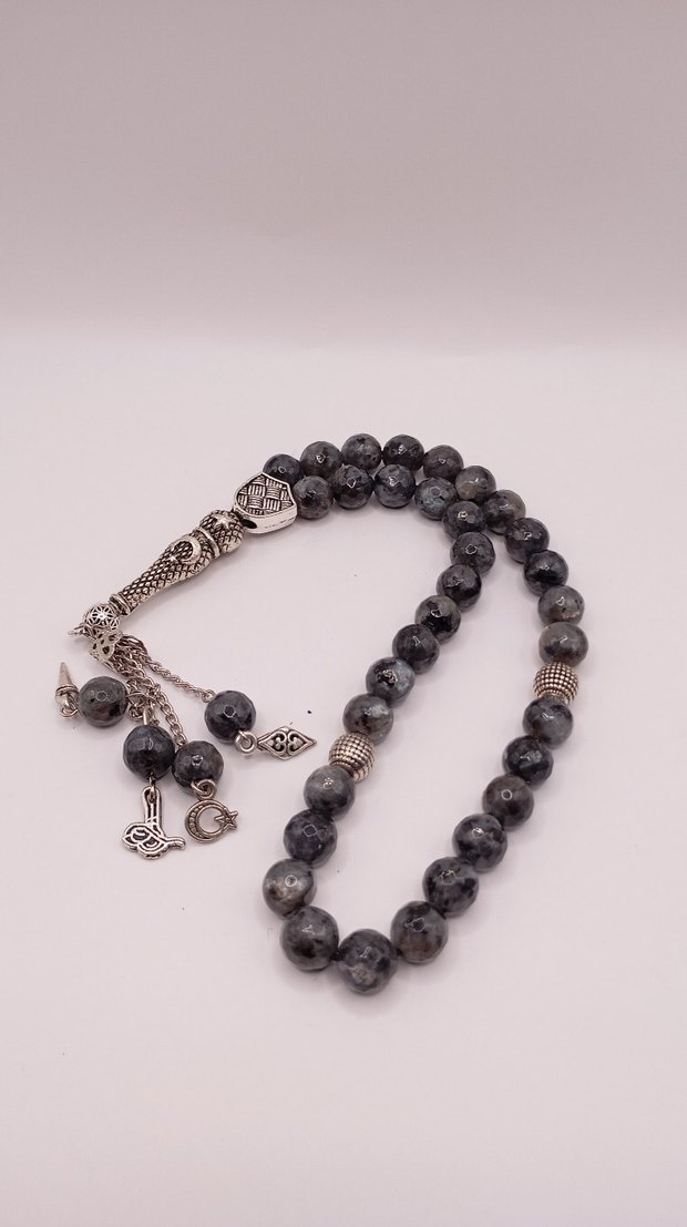 Işığın Dansı: Labradorit Açıklama: Her bir tanesinde saklı bir galaksi... Labradorit taşının o kendine has metalik parıltılarıyla tanışın. Sadece bir tesbih değil, ışığın her açısında farklı bir hikaye anlatan bir sanat eseri. ✨ Gümüş işçiliği ve Tuğra/Ay-Yıldız detaylarıyla asalet yeniden tanımlandı. Taş: Doğal Labradorit Detay: Özel gümüş kaplama tasarım Etki: Aurayı güçlendirme ve sezgisel denge