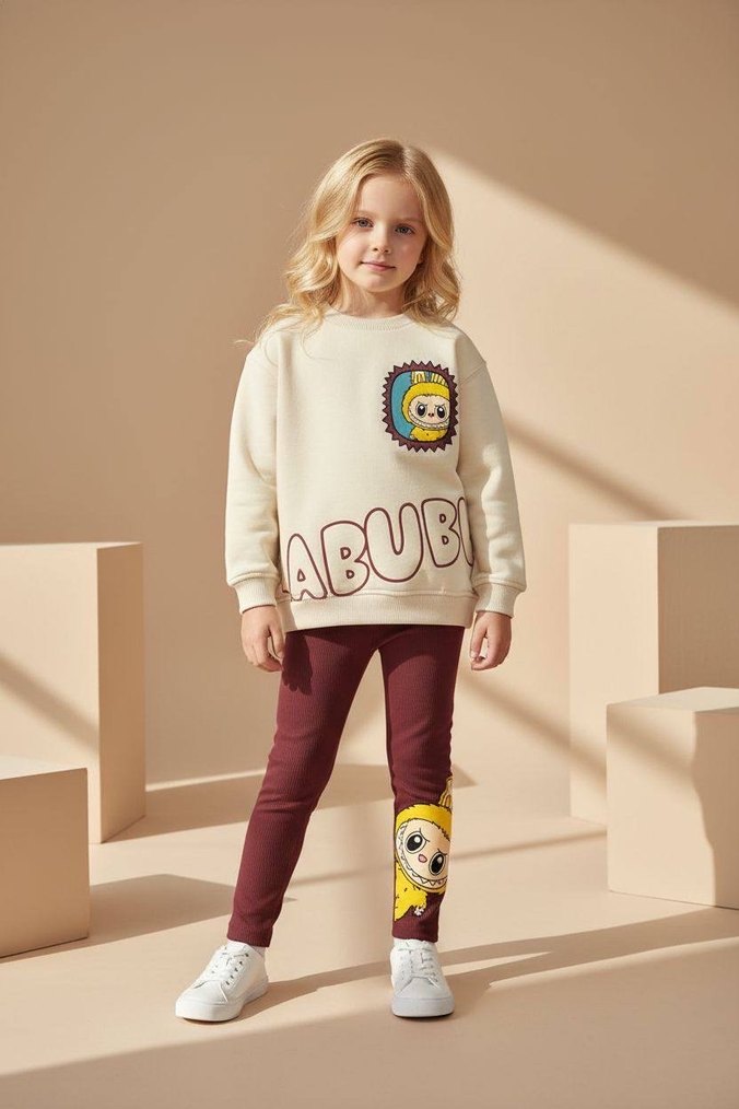 ▫️2-3 / 3-4 / 4-5 / 5-6 / 7-8 ▪️%100 COTTON Lütfen ilan açtırınız. Kız çocuklar için bol kesim, uzun kollu ve bisiklet yaka sweatshirt ile pufflu bağlama desenli eşofman altı. Labubu baskılı, rahat ve şık.