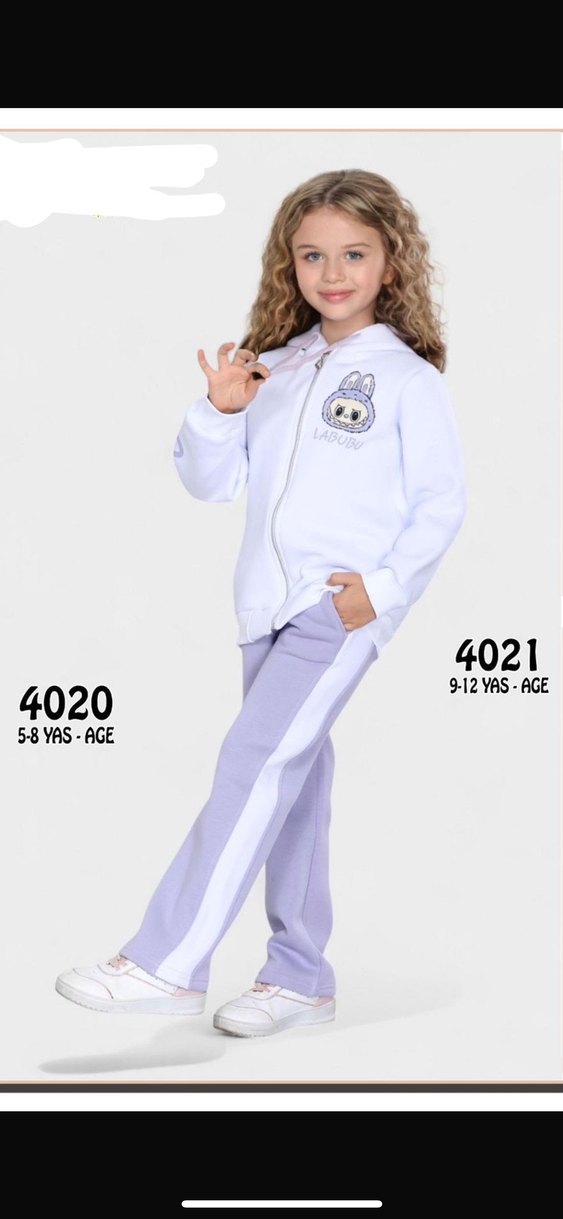 Bol kesim, fermuarlı, uzun kollu, mor pastel tonlarda bağcıklı sweatpant ve sweatshirt takımı. 9/12 yas aramiz mevcuttur