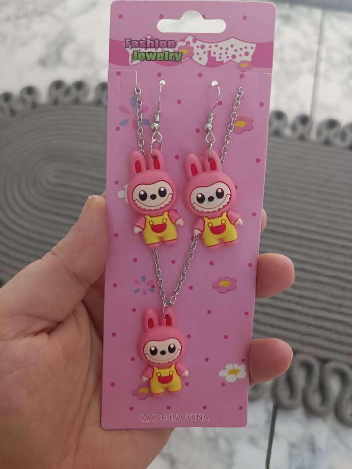 Labubu kolye küpe set
