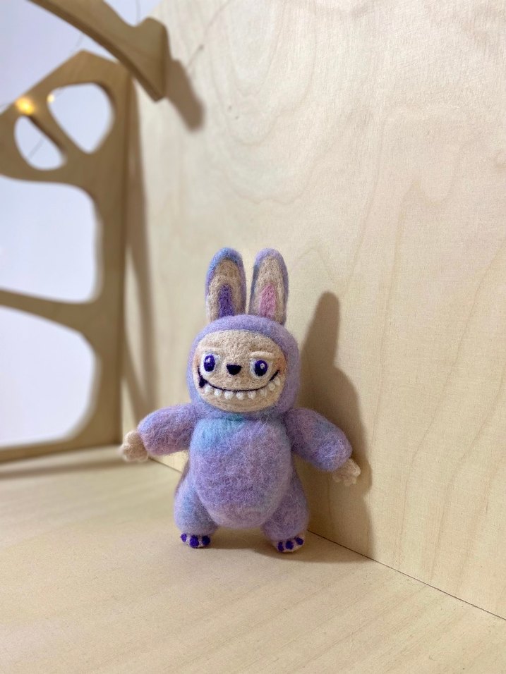 Sevimli yüzü ve küçük detaylarıyla yumuşak pastel mor tavşan peluş oyuncak. Keçe iğneleme tekniği ile tasarlanmıştır. Ürün boyutu kulakları ile birlikte 20 cm
