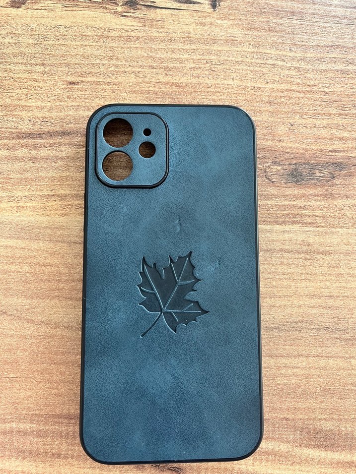 Koyu mavi renkte, bohem tarzda, arkada yaprak kabartmalı ve laceli detaylara sahip telefon kılıfı. İPhone 12