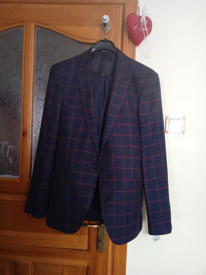 lacivert kareli, erkek takım elbise ceketi. Normal uzunlukta, regular fit ve uzun kolludur. Ofis kullanımı için uygundur. hiç bir sorunu yoktur.yelek ve pantolonu mevcud.