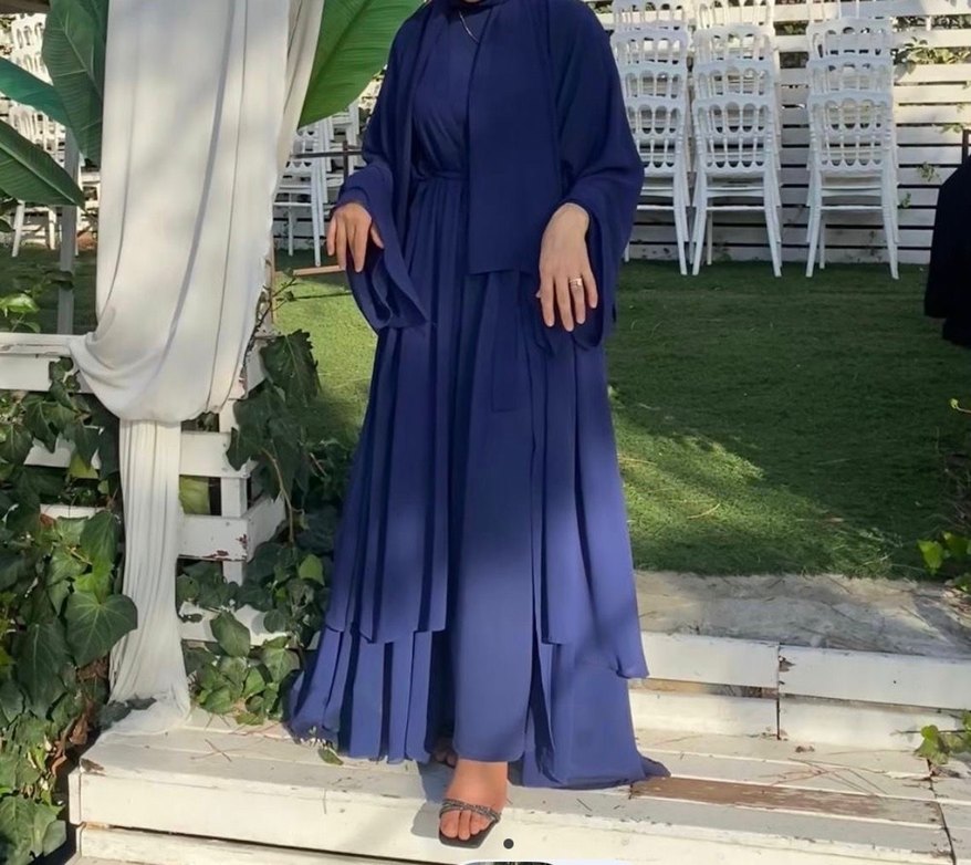 Lacivert Abaya şal dahildir standart bedendir kemerlidir bir kez tek giyildi fotoğraftaki 57 kilo 160 boyunda