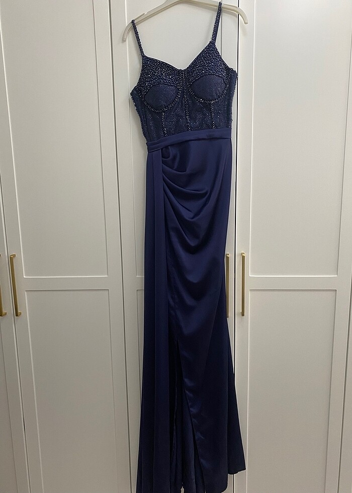 Lacivert taşlı abiye