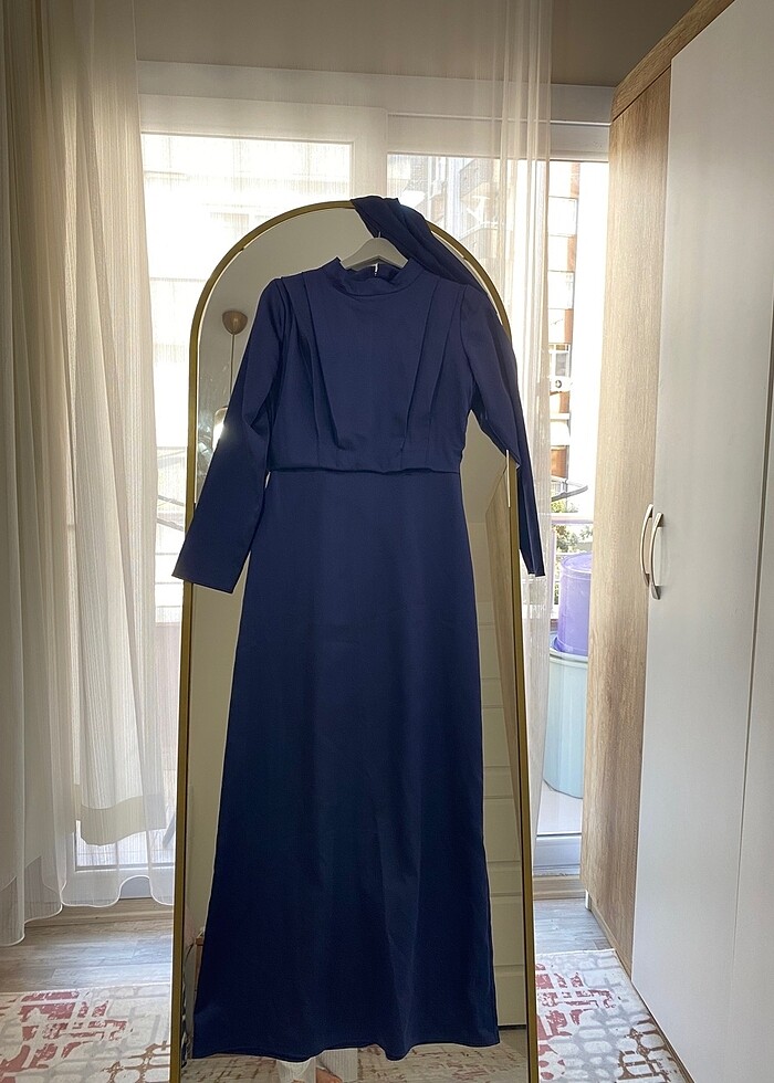Lacivert abi cok şık ve zarif bir elbise aynı renk tonu janjan şal hediye