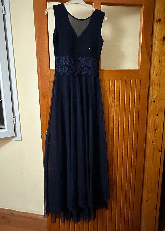 Sadece 1 kere giyildi s beden lacivert beli dantelli abiye elbise