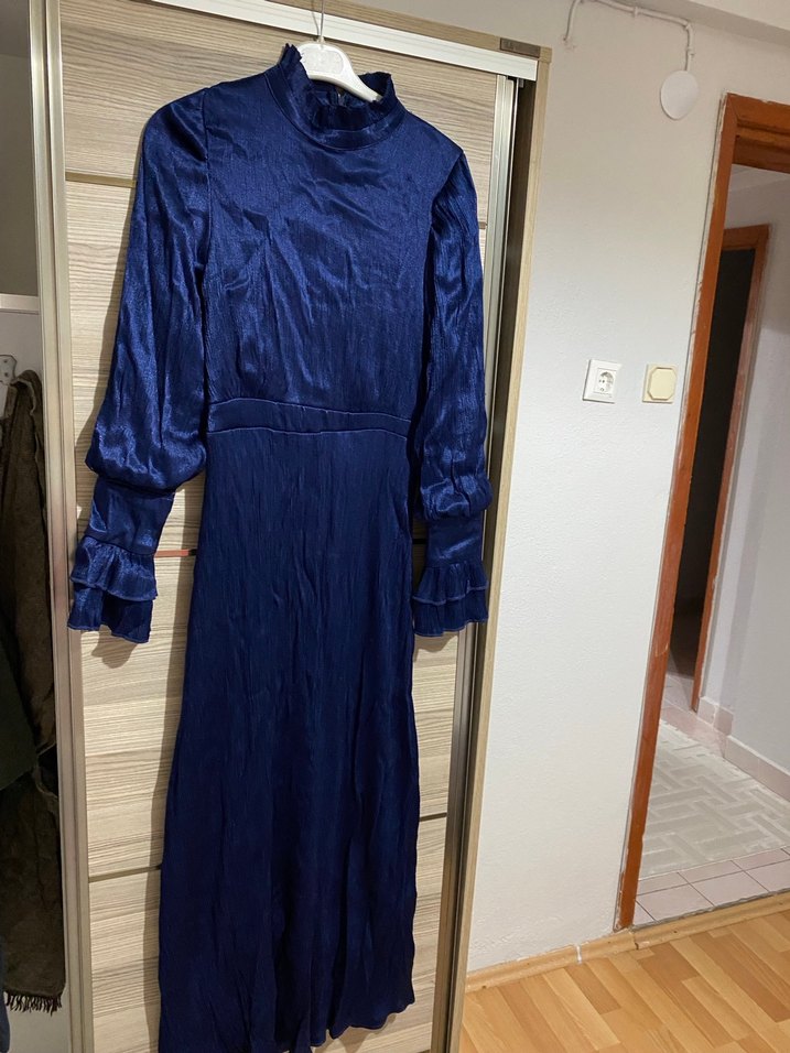 Lacivert abiye ufak cekilmeleri var uzerinde bir kere giyildi