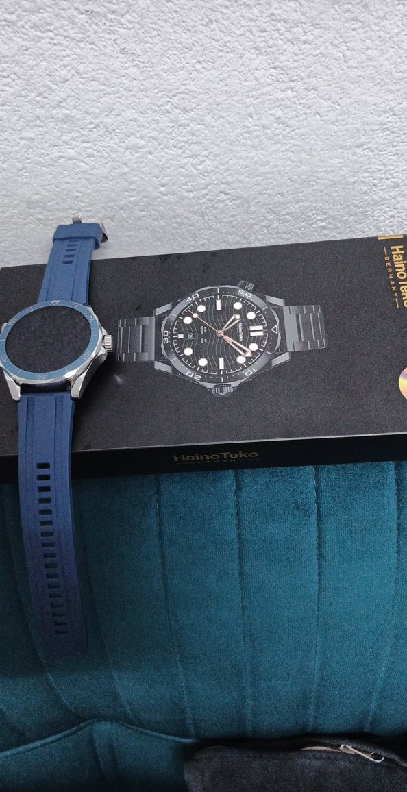 Lacivert renkte, yuvarlak ekranlı ve rahat kayışlı bir akıllı saattir. Şıklığı ve fonksiyonelliği bir arada sunar. ⌚