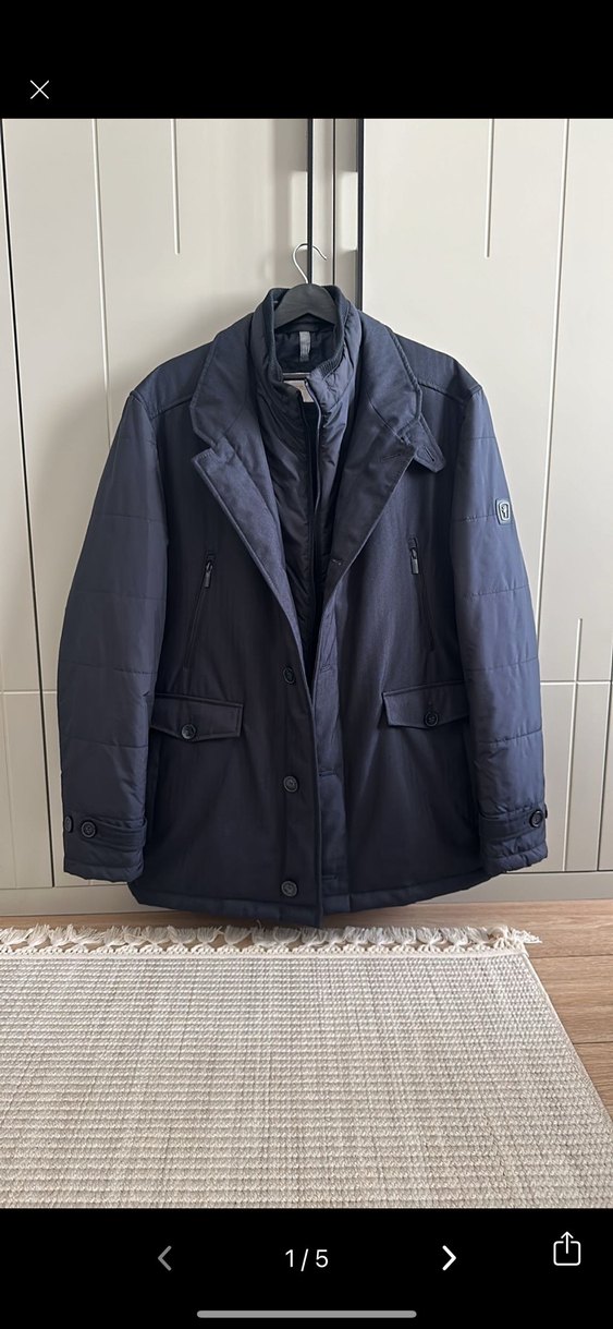 Lacivert erkek ceket, kesikli yaka, uzun kollu ve normal kesime sahiptir. Kemer detayı ve yumuşak sıcak dokusuyla ofis ve günlük kullanıma uygundur.