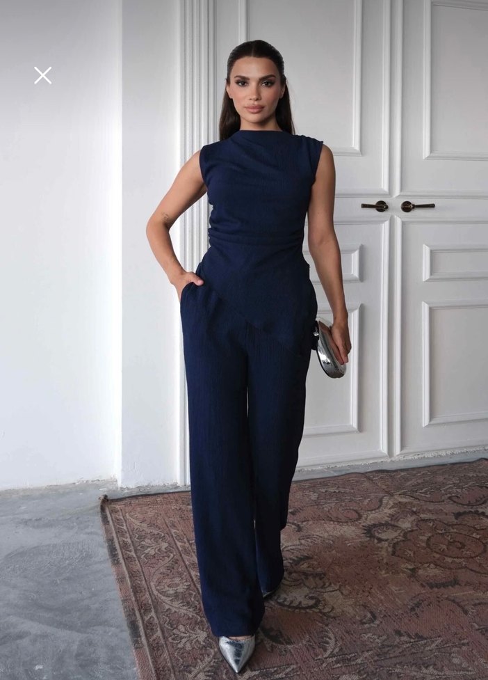 Lacivert asimetrik Kolsuz alt üst ikili takım