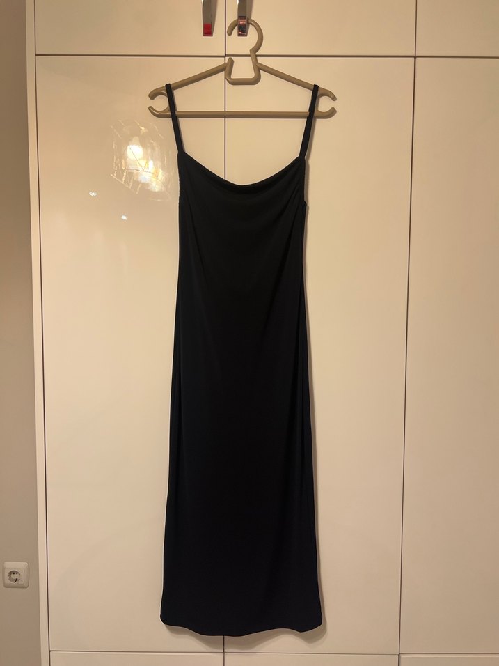 Lacivert Askılı Uzun Drapeli Kadın Elbise