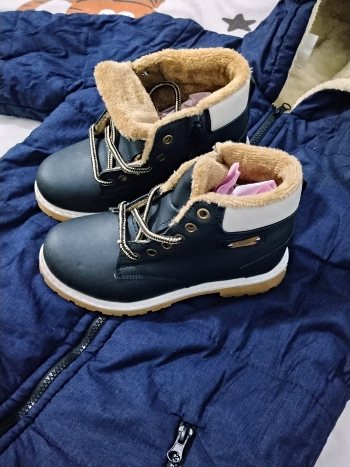 Bağcıklı, gri kauçuk dış yüzeyli ve içi yumuşak, sıcak astarlı erkek çocuk botu. Trend sokak stiline uygun.