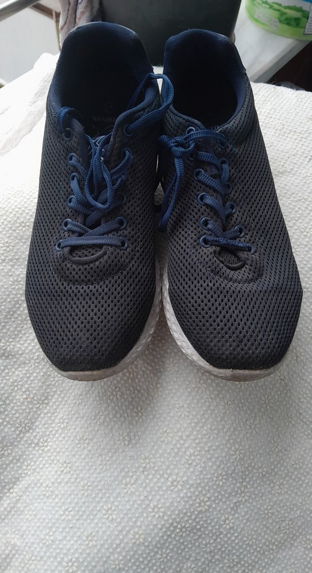 Nefes alabilen file üst yüzeye ve kauçuk tabana sahip lacivert bağcıklı kadın spor ayakkabısı. Rahat ve şık, günlük spor giyime uygun.