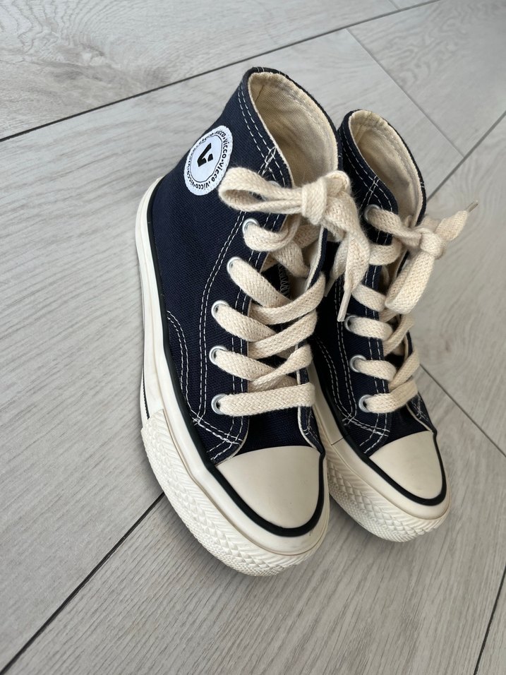 Lacivert bağcıklı, baskılı detaylara sahip düz taban günlük spor ayakkabısı, kauçuk tabanlıdır. Sokak stili için uygun.