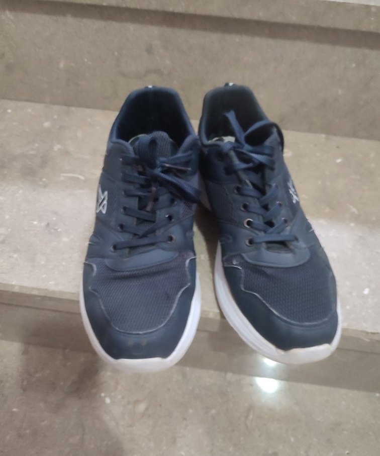 Lacivert ve gri tonlarda, bağcıklı ve ince topuklu, spor ve sokak stilini birleştiren kadın sneakers. Kauçuk malzemedendir.