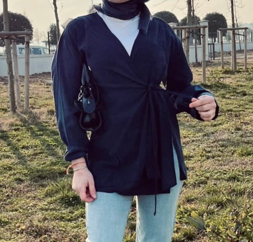 Lacivert bağlamalı tunik